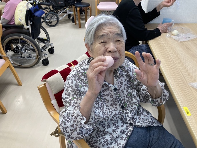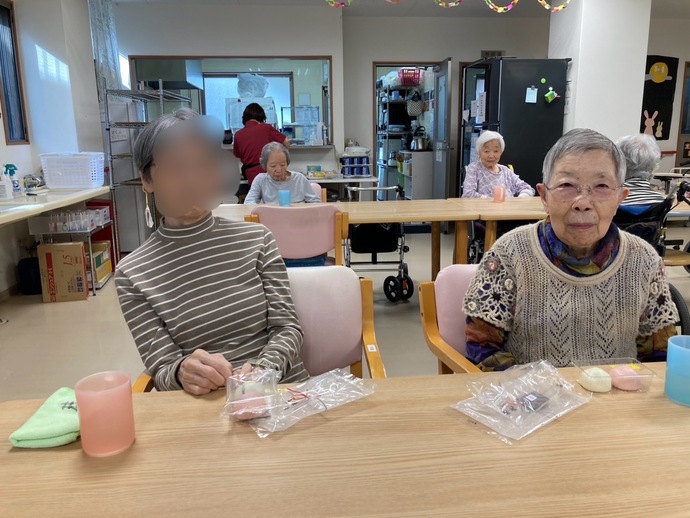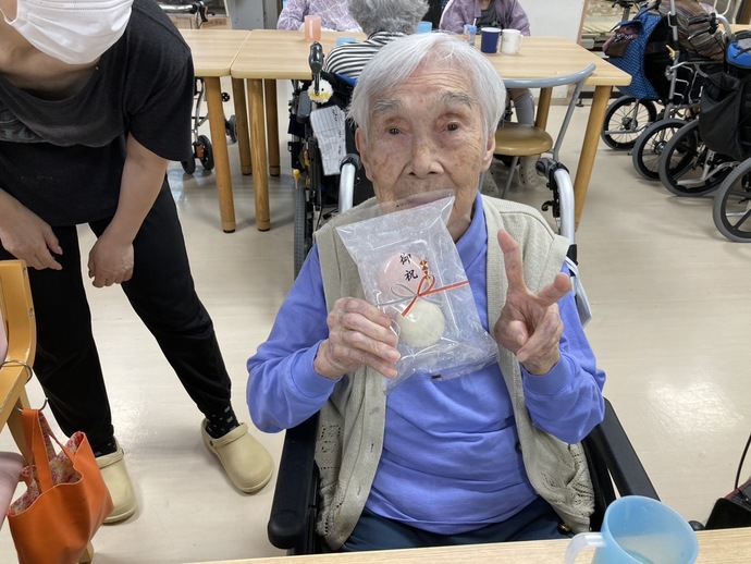 9月15日は敬老の日ということで、おやつに紅白饅頭をご用意しました。