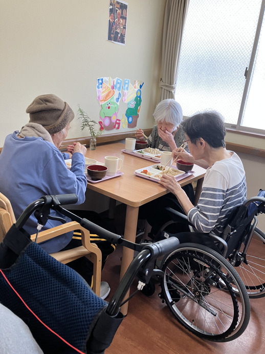 利用者様からは「昔よく折ったのを思い出す」普段はあまり会話をされない方も、この時間は「こっちがうまくできた」と笑顔で話され、自然と交流が生まれていました。
