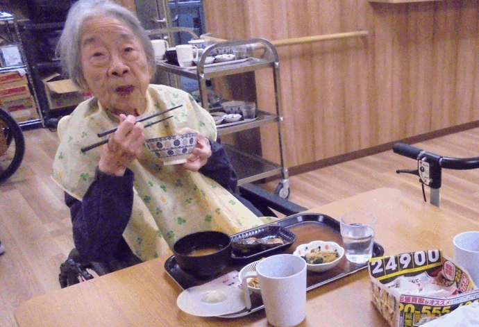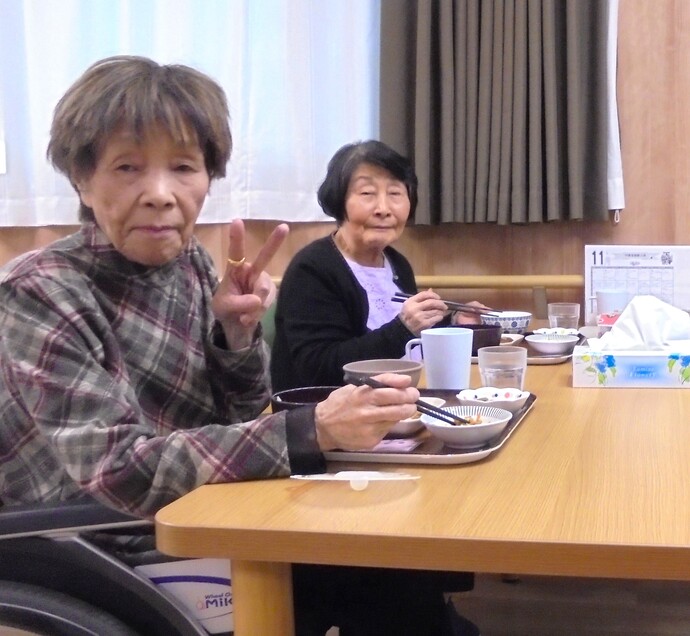 お食事どうですか?と尋ねると、「おいしいよ」と笑顔が見られました。