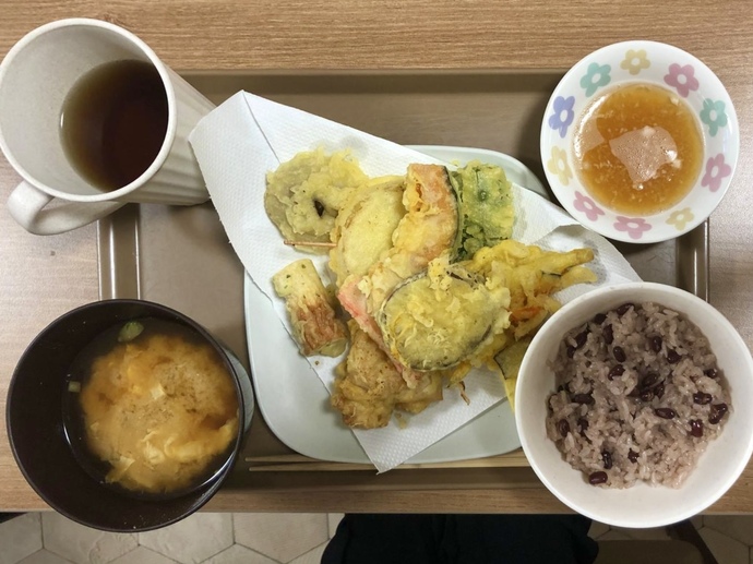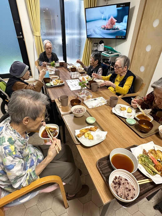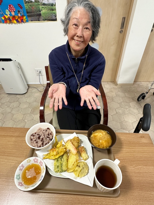 利用者様からは「揚げたてで嬉しい」「お赤飯嬉しい、おかわりします」との声が聞かれ、喜んで召し上がっていただけました。