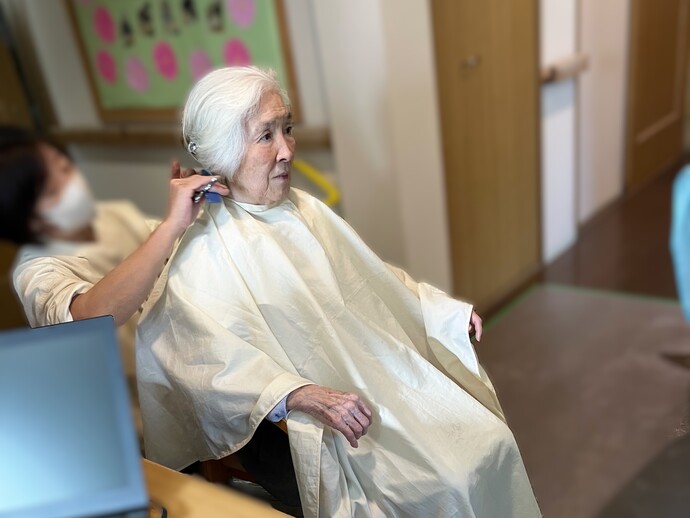 このたび、施設に美容師さんをお招きし、入居者の皆さまにヘアカットをしていただきました。