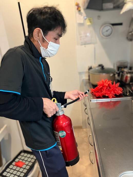 初期消火、通報、避難経路の確認を行い、実際の場面を想定しながら訓練を進めました。