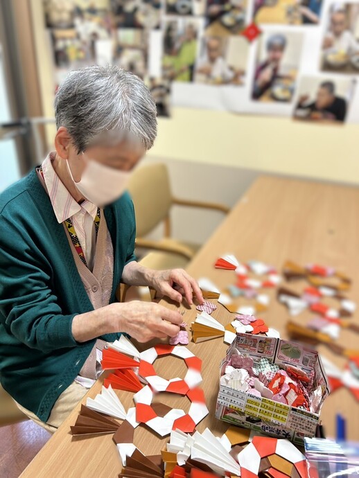 また、しめ縄づくりでは、居室に飾るためのしめ縄を、利用者様同士で協力しながらたくさん作成されました。