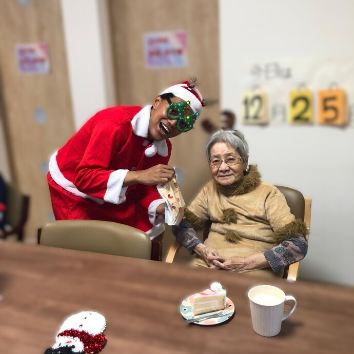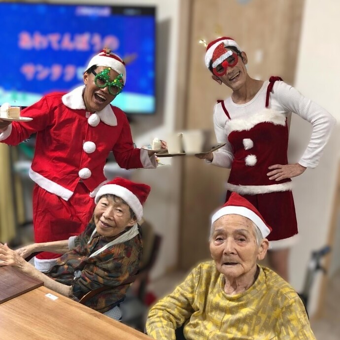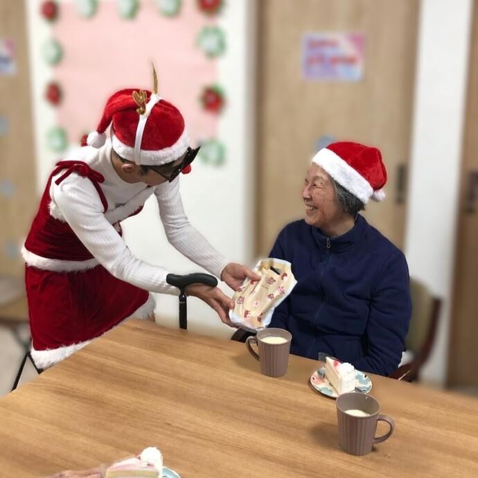 クリスマスイベントでは、職員がサンタに扮し、プレゼントをお配りしました。