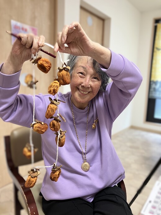 また、利用者様皆さんで干し柿作りを行ったり、ネイルを施して指先をカラフルに彩ったりと、日々の活動やレクリエーションを通して、たくさんの笑顔が生まれています。