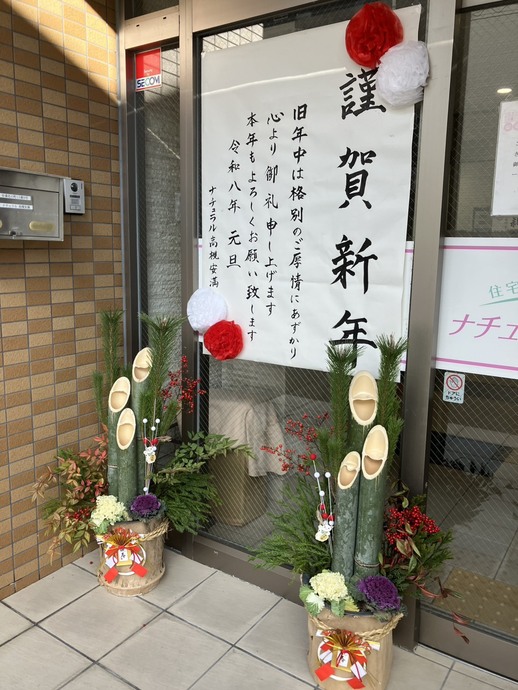 立派な門松のおかげで、玄関がとても華やかになりました🎍