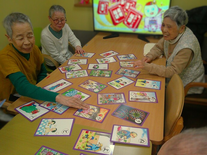 年末年始には、年越しそばやおせち料理などのお食事を楽しまれたり、カルタやトランプなどの遊びを通して、利用者様の笑顔が絶え間なくあふれる、楽しい時間をお過ごしいただきました✨😊