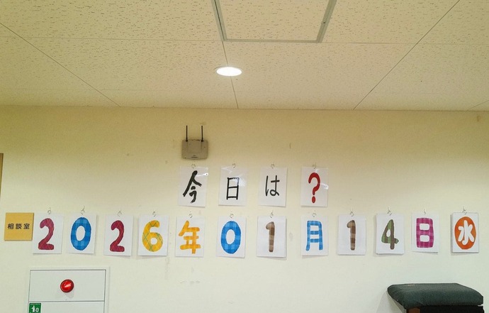 これまで少し寂しい印象だった館内の壁に、「今日は?」の日付ボードを設置しました📅✨