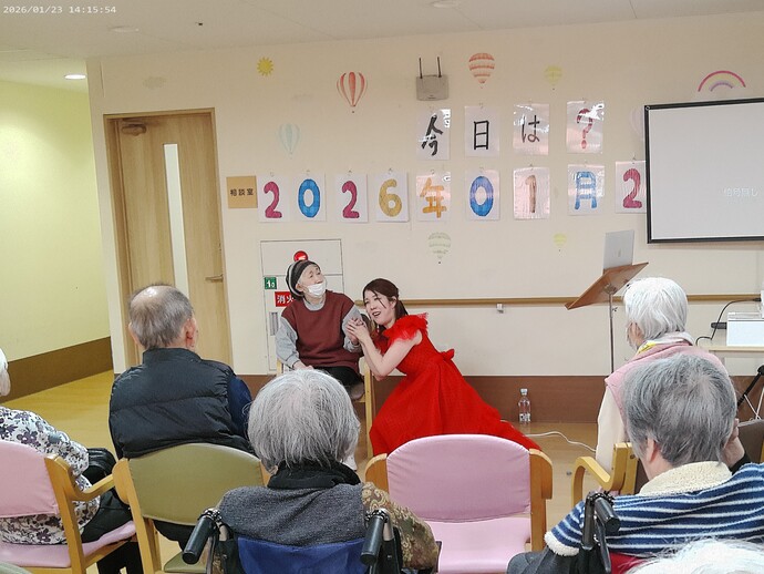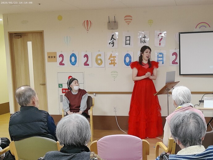 歌い手の方が利用者様のそばで歌ってくださる場面もあり、会場は一体感に包まれ、心温まるひとときとなりました。