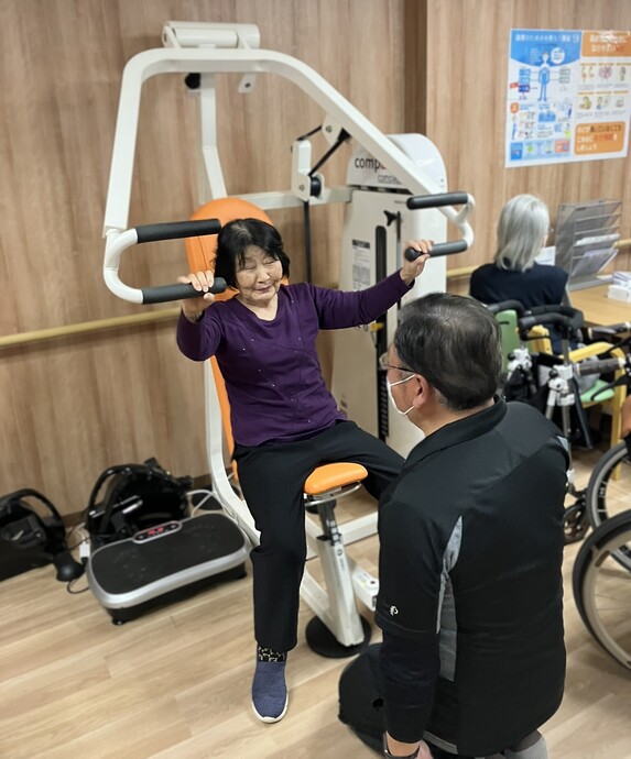 最近は、利用者様の意欲も特に高まっており、設置されている3台のトレーニングマシンにも「やってみよう!」と挑戦される方が以前より増えてきました😲✨