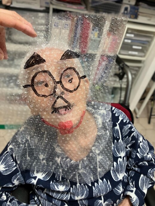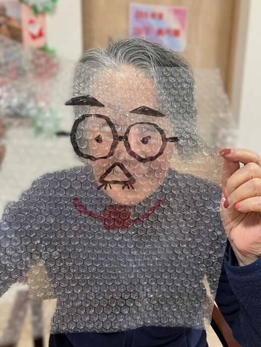 プチプチに描いた絵を顔に当ててみるなど、楽しみながら工夫される姿も見られ、
