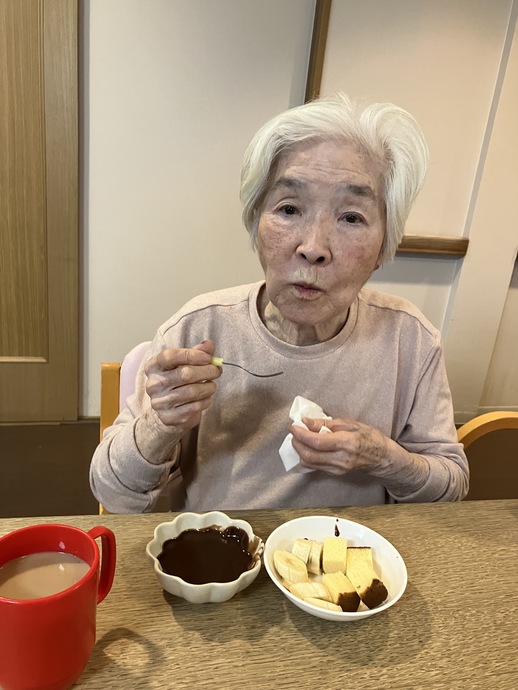 溶かしたチョコレートにバナナやカステラをつけて、甘く幸せな時間を過ごしました。
