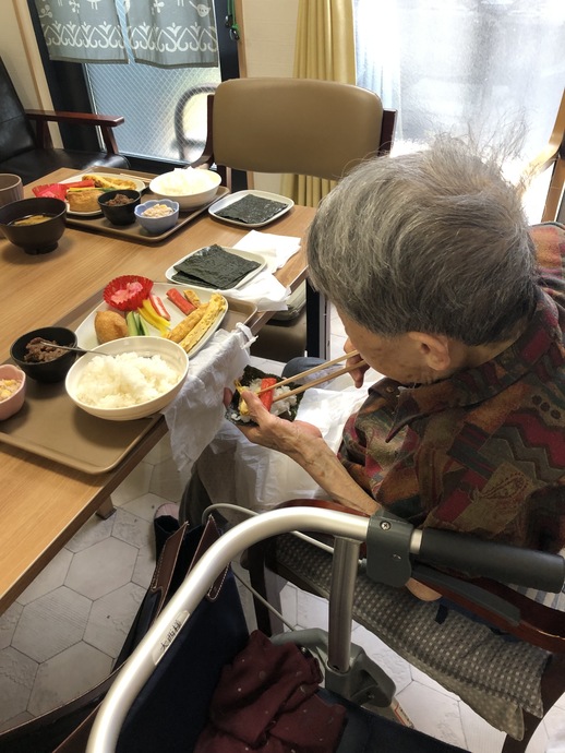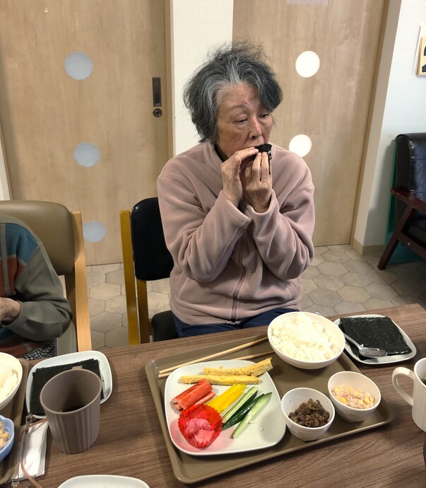 出来上がった手巻き寿司をほおばりながら、「やっぱり自分で作るとおいしいね」と嬉しそうに話される姿がとても印象的でした☺️
