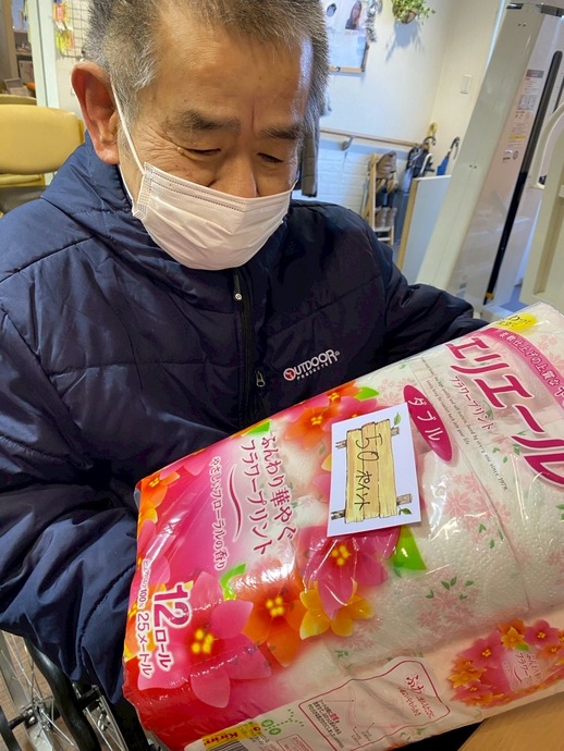 今回はトイレットペーパーや小型ヒーター、腕時計などをゲットされ、「頑張ってよかった~」と、とても嬉しそうな笑顔が見られました。