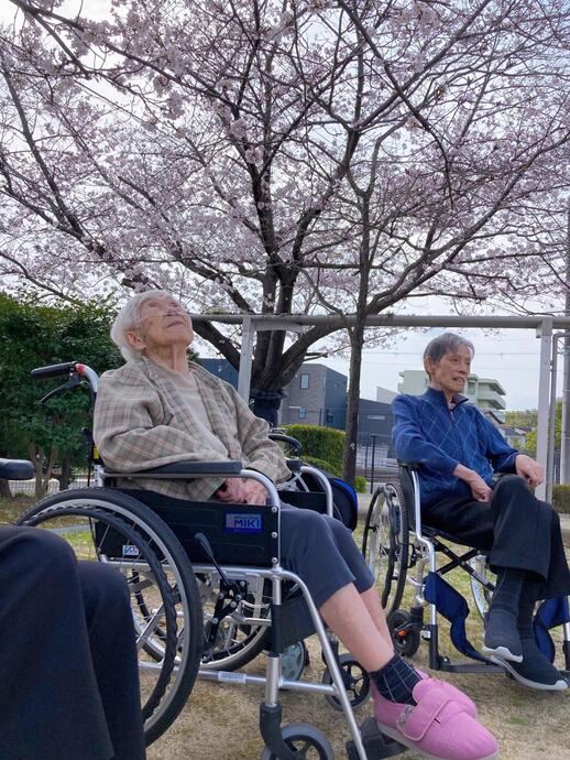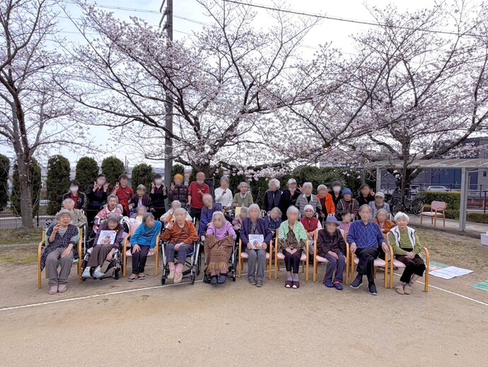 利用者様総勢29名と職員7名での外出となりましたが、皆さん桜をご覧になると「綺麗やなぁ~、桜はええなぁ~」と喜ばれていました♪