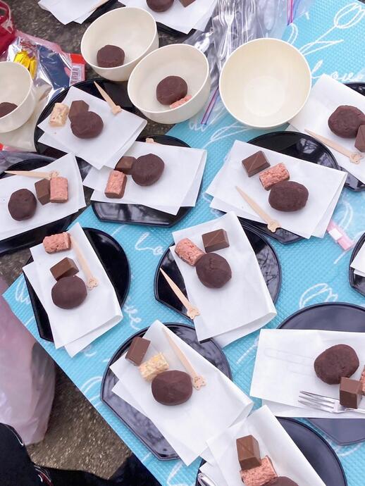 その後は、おはぎやおやつを桜の下で楽しんでいただき、記念撮影も行いました。