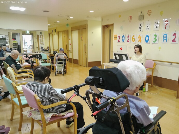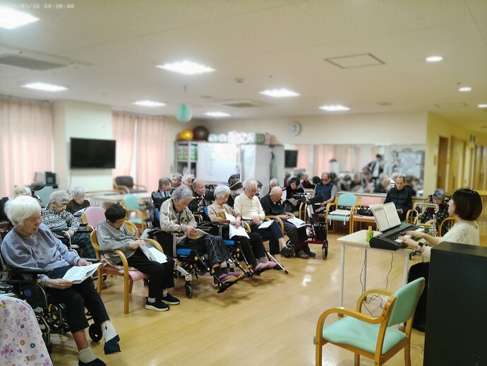 車椅子に座りながらもリズムをとったり、口ずさむだけでなく、しっかりと声を出して歌われる方も多く、会場全体が一体感に包まれていました。